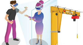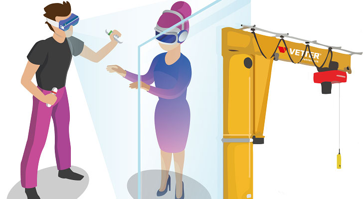Wir haben vor knapp vier Jahren die Stabsstelle „Digitale Transformation“ bei VETTER gegründet, die direkt der Geschäftsführung unterstellt ist. Ich habe die große Freude, dass ich diese seitdem ausfüllen darf. Mittlerweile gibt es eine weitere Kollegin, die sich in den letzten Zügen ihres Studiums befindet, sodass wir diese Stabsstelle zeitnah verstärken werden. Wir sind mit ca. 240 Mitarbeitern ein mittelständisches Unternehmen. Natürlich müssen wir hinsichtlich der Digitalisierung die Baseline sehen, da wir nicht über die finanziellen Mittel und Manpower verfügen, wie es bei einem Weltkonzern der Fall ist. Also müssen wir genauer hinschauen, wo wir investieren wollen und uns wohlüberlegt die Frage stellen, welche Maßnahmen welchen Benefit am Ende des Tages versprechen. Wir haben uns vor ca. drei Jahren mit dem Forschungsprojekt aSTAR auf den Weg gemacht, die Prozesse an unseren Krananlagen – also Wartungs- und Montageprozesse – mittels Virtual Reality (VR) und Augmented Reality (AR) zu simulieren. VR und AR kann man vielfältig als Methode einsetzen, z. B. damit der Konstrukteur im Vorhinein die Montageschritte seiner Konstruktion bedenkt und Monteure oder Servicemechaniker, die später am Kran arbeiten, vorher ihre Arbeiten virtuell simulieren können.