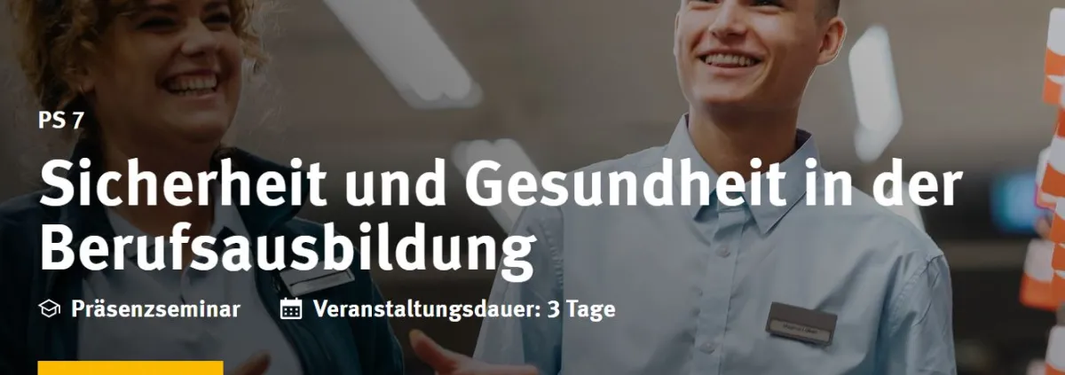 Niemand im Unternehmen hat eine längere Berufstätigkeit vor sich als die Auszubildenden. Deshalb lohnt es sich besonders, sie für die Themen Sicherheit und Gesundheit bei der Arbeit zu sensibilisieren und fit zu machen. Verantwortliche in der Ausbildung tauschen sich in diesem Seminar aus und erweitern ihre inhaltlichen und methodischen Kompetenzen.